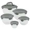 10-Piece Rachael Ray Leak-Proof Nestable Round Food Storage Bin Set $18 at Amazon $18 $35 Amazon has the 10-Piece Rachael Ray Leak-Proof Nestable Container Round Food Storage Bin Set (Clear with Gray Lids) for $18 with free shipping on $35+ or with Prime. Includes 250ml / 1.1-cup container with lid, 600ml / 2.5-cup container with lid, 1300ml / 5.5-cup container with lid, 2400ml / 10.1-cup container with lid, and 4000ml / 17-cup container with lid and flip-up handle. $18 retail: $35 Posted by DrBatman12/25/2025 at 04:36 AM PT