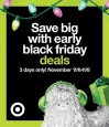 At least 40% Off Early Access Black Friday Deals at Target Starting today, Target’s 3-Day Early Black Friday Sale is back with most deals at 40% off or more. Save big on gifts, holiday decor, toys, clothing, kitchen essentials, and more seasonal must-haves. Black Friday officially starts online 11/27 and in stores 11/28.Early deals include: 30% off Levi's 40% off Pajamas 40% off Champion 40% off select Lego Up to 50% off Select toys Up to 50% off small appliances & floorcare 40% off kid's & women's sweatshirts & sweatpants Posted by VanGogh11/05/2025 at 11:59 PM PT