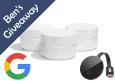 Ben's 48-Hour Google Wi-Fi Mesh 3-pack w/ Chromecast Ultra Giveaway! at Amazon $320 EDIT 3: Congrats to blendedmarket!EDIT 2: 1st email didn't respond, new winner emailed.EDIT: Winner has been emailed, awaiting response.Happy Black Friday Month! Today, we are giving away the Google Wi-Fi Mesh System (3-pack) with a Chromecast 4K Ultra! (MSRP $320) This giveaway ends in 48 hours at 9:59 AM PT on Wed, November 6, 2019. In the comments below, just tell us if are you already streaming 4K video in your home. You must leave a comment on this post to qualify. (registration required). In addition to earning one entry on this post, you can also earn an additional five entries to increase your odds of winning if you leave at least 3 comments (helpful, interesting, critical or funny; not spam) on different deal posts before the end of the giveaway. The winner will receive notification via the email account tied to their Ben's user account. Subject to these Rules & Regulations. Good luck!Recent Winners:Fire HD 10: Congrats to Jebulitis!DeWalt 20V Drill: Winner emailed, awaiting response.PS4 Pro Bundle: Congrats to Strike1! retail: $320 Posted by BensGiveaways11/04/2019 at 10:00 AM PT